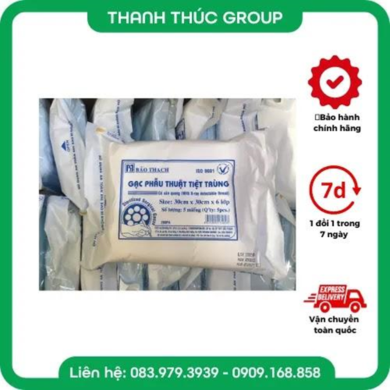 Gạc Phẫu Thuật Tiệt Trùng Có Cản Quang 30×30 6 Lớp Bảo Thạch là vật tư y tế thiết yếu, được thiết kế đặc biệt để đảm bảo an toàn và hiệu quả tối đa trong các ca phẫu thuật. Sản phẩm giúp hỗ trợ quá trình phẫu thuật diễn ra thuận lợi, đồng thời giảm thiểu rủi ro cho bệnh nhân.
