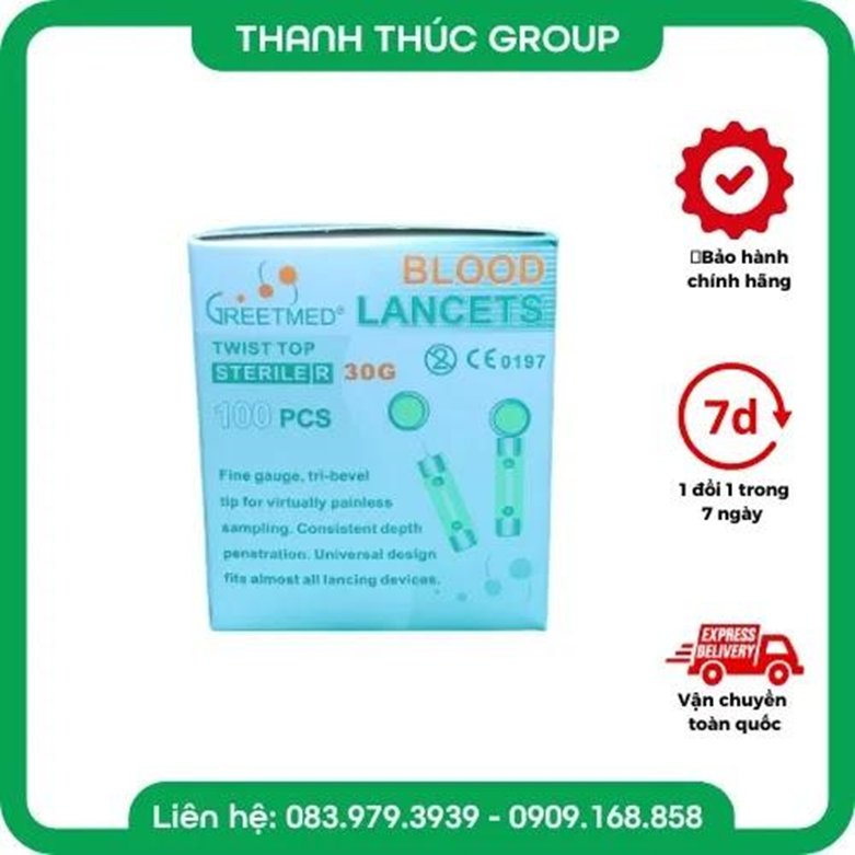 [Hộp 100 Cây] Kim Chích Máu Thử Đường Huyết Đầu Tròn Greetmed Dùng Cho Tất Cả Loại Máy